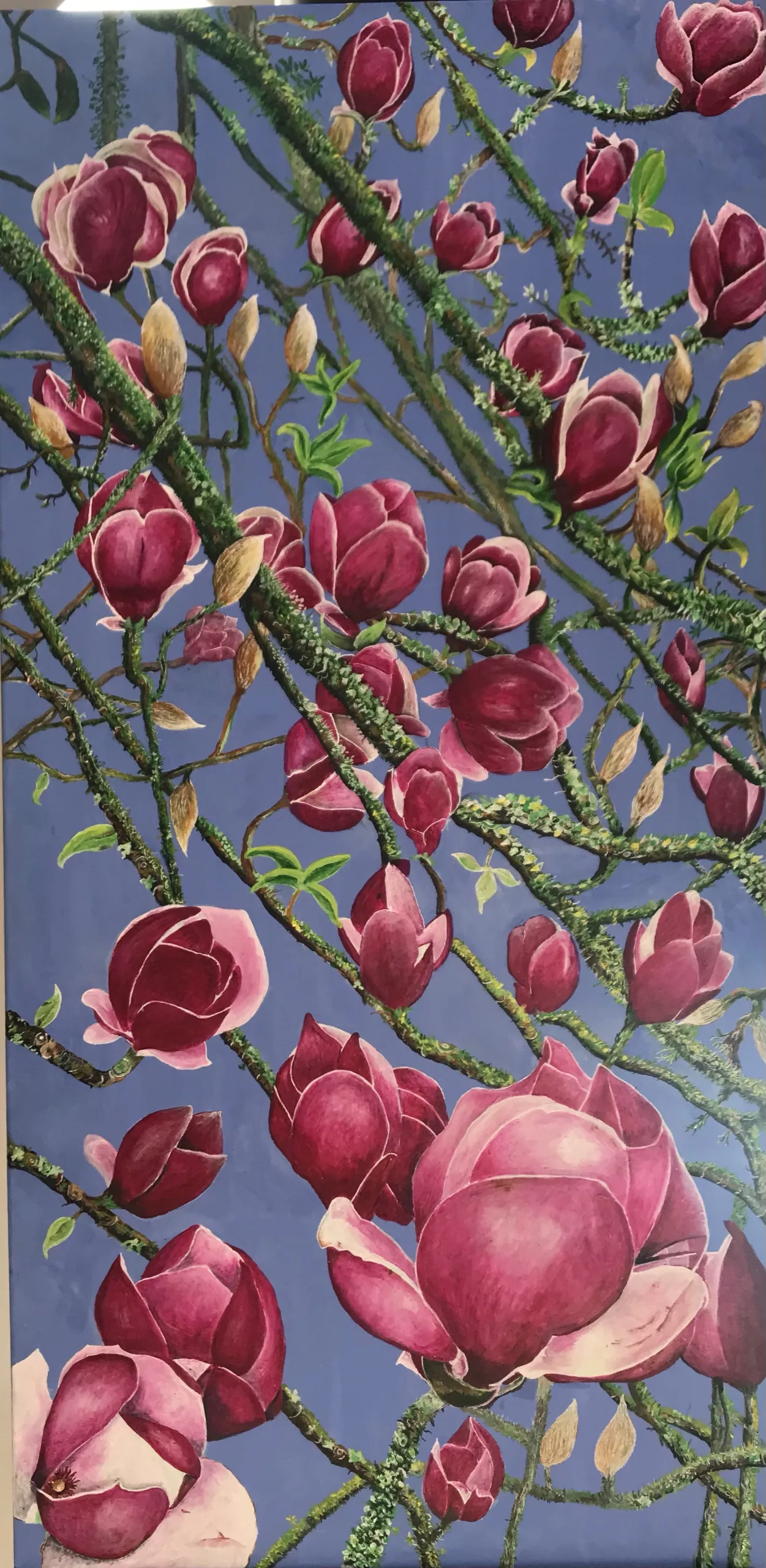 Specialist in large floral original paintings for focal points in a clients home. The artist welcomes enquiries from clients requiring paintings of favourite flowers to complement a room and celebrate their love of flowers.